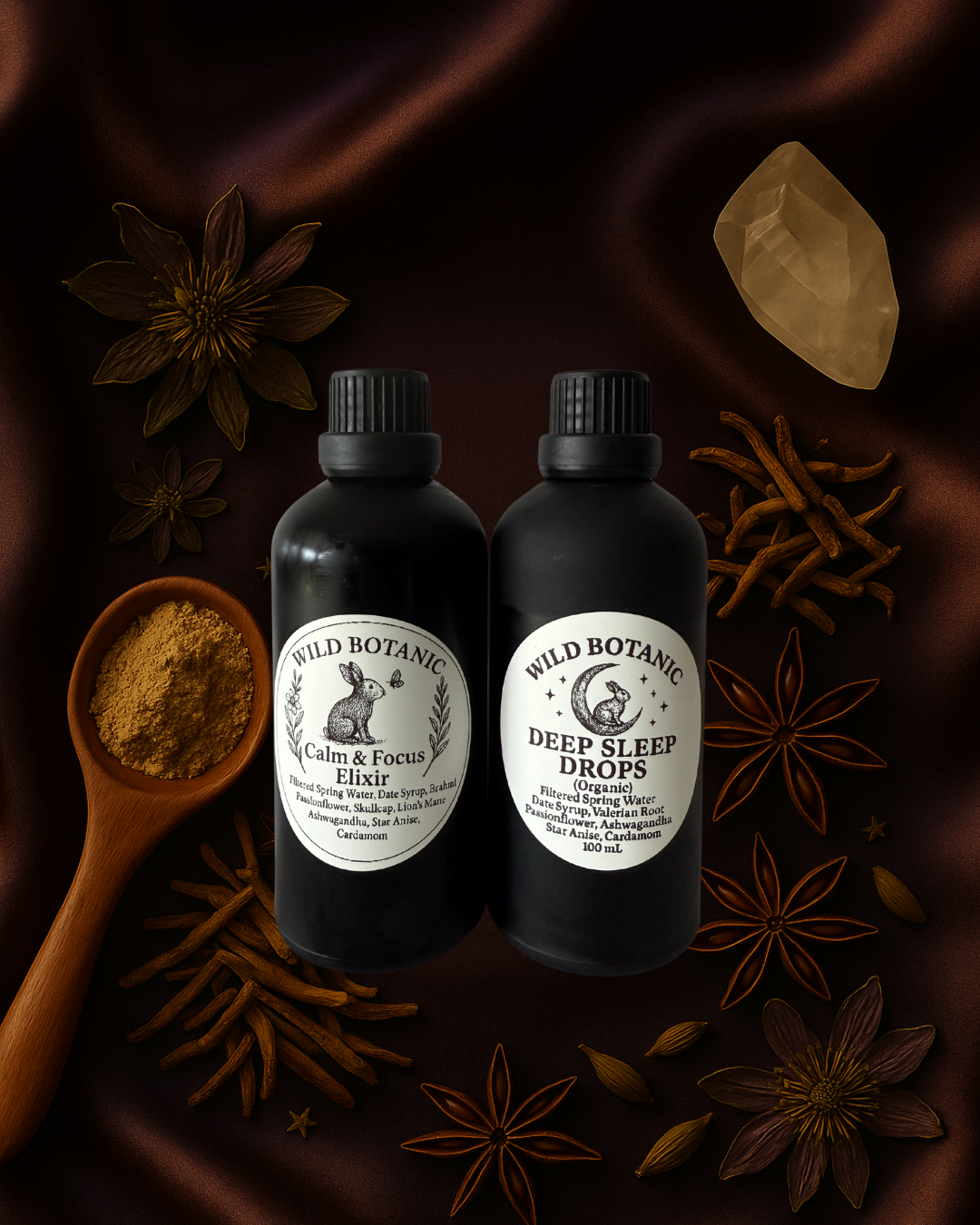 This soothing duo pairs our Calm & Focus Elixir for steady, centered energy throughout the day with our Deep Sleep Drops for restorative rest at night. Together, they help ease stress, regulate the nervous system, and bring balance back to body and mind — so you can enjoy calm days and deep nights, naturally.
