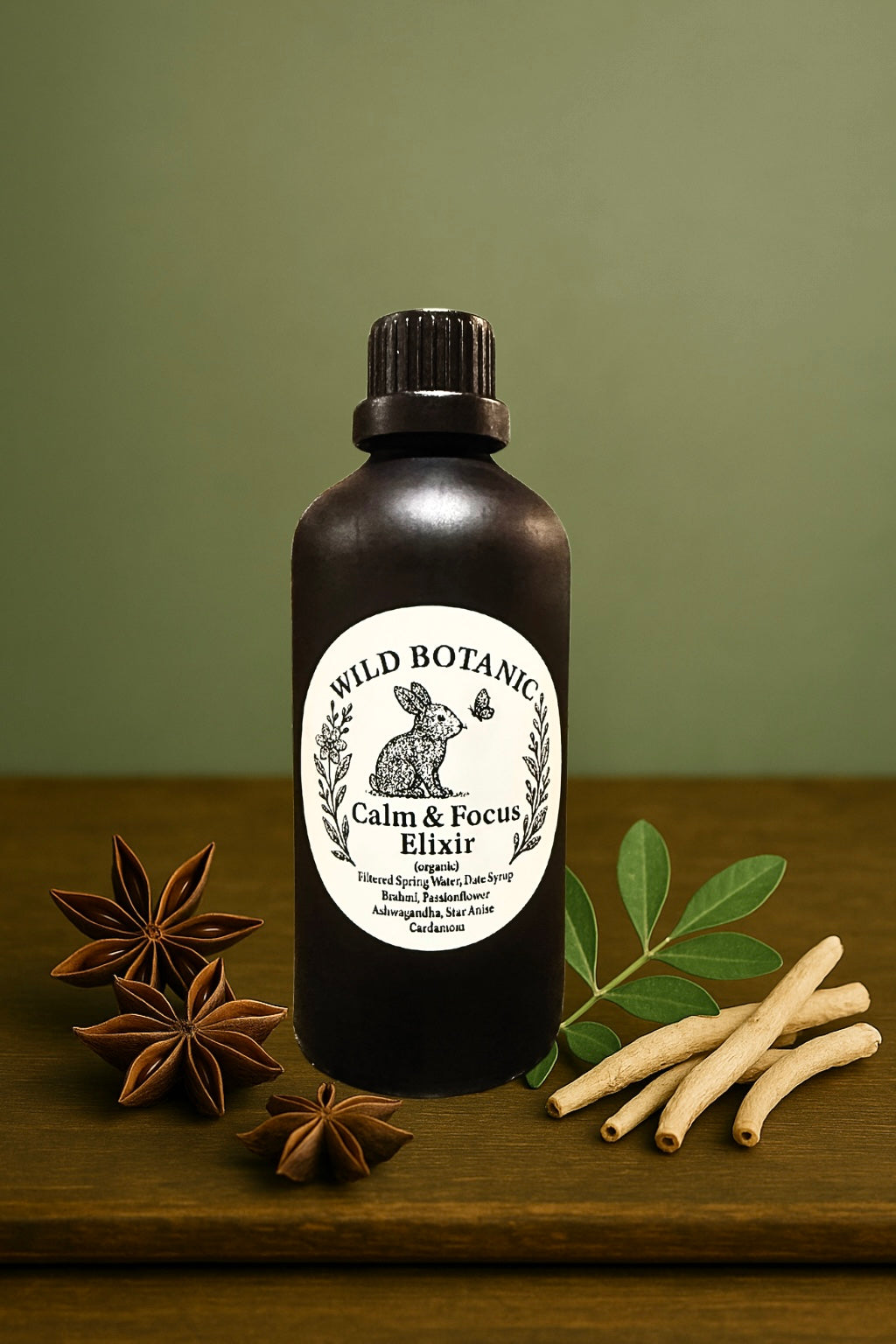 🌞 Calm & Focus Elixir – Supports focus, reduces stress, and promotes calm energy through the day